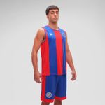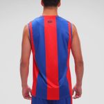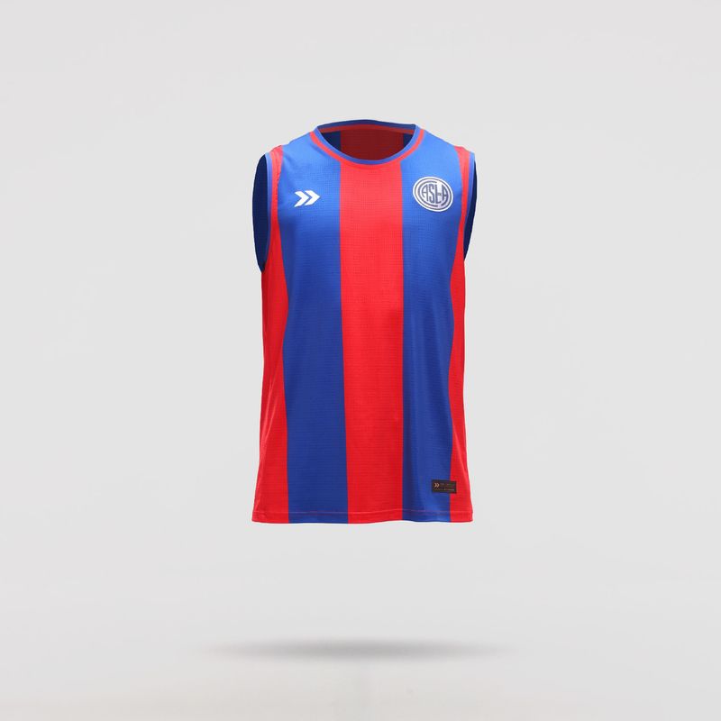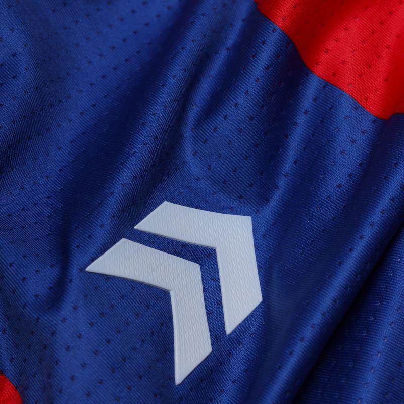 Siguiendo la línea de fútbol, se caracteriza por sus franjas anchas en colores azul brillante y rojo intenso.