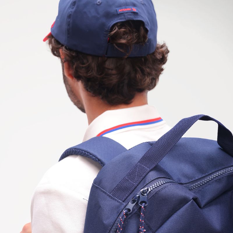 Posee visera curva envivada, y tira trasera de ajuste con velcro, uniones internas envivadas con frase alusiva; parche de emblema casla en goma con altura en delantero y grifa tejida con logo atomik en espalda.