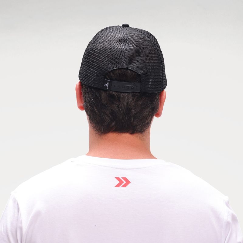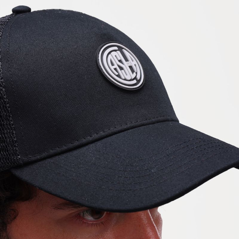 Posee visera precurvada, tira trasera de ajuste, uniones internas envivadas con frase alusiva; parche de emblema casla en goma con altura en delantero y grifa tejida con logo atomik en espalda.