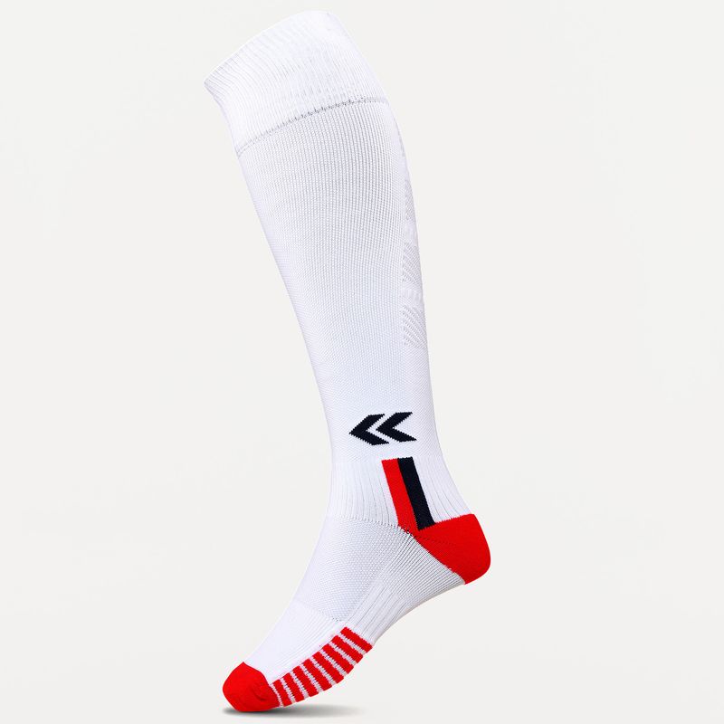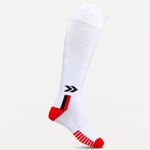 • Posee caña extra larga, talón y puntera reforzados, costura de puntera plana, pié acolchado con media toalla, compresión en tobillo y arco de pié, zonas de ventilación, puño doble y logo tejido.