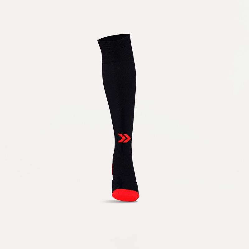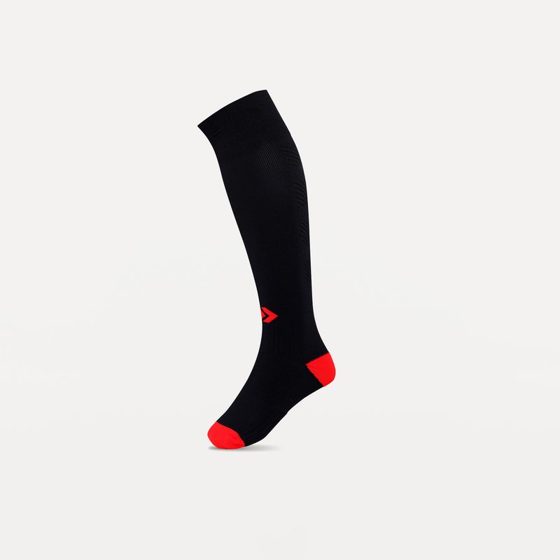 • Posee caña extra larga, talón y puntera reforzados, costura de puntera plana, pié acolchado con media toalla, compresión en tobillo y arco de pié, zonas de ventilación, puño doble y logo tejido.