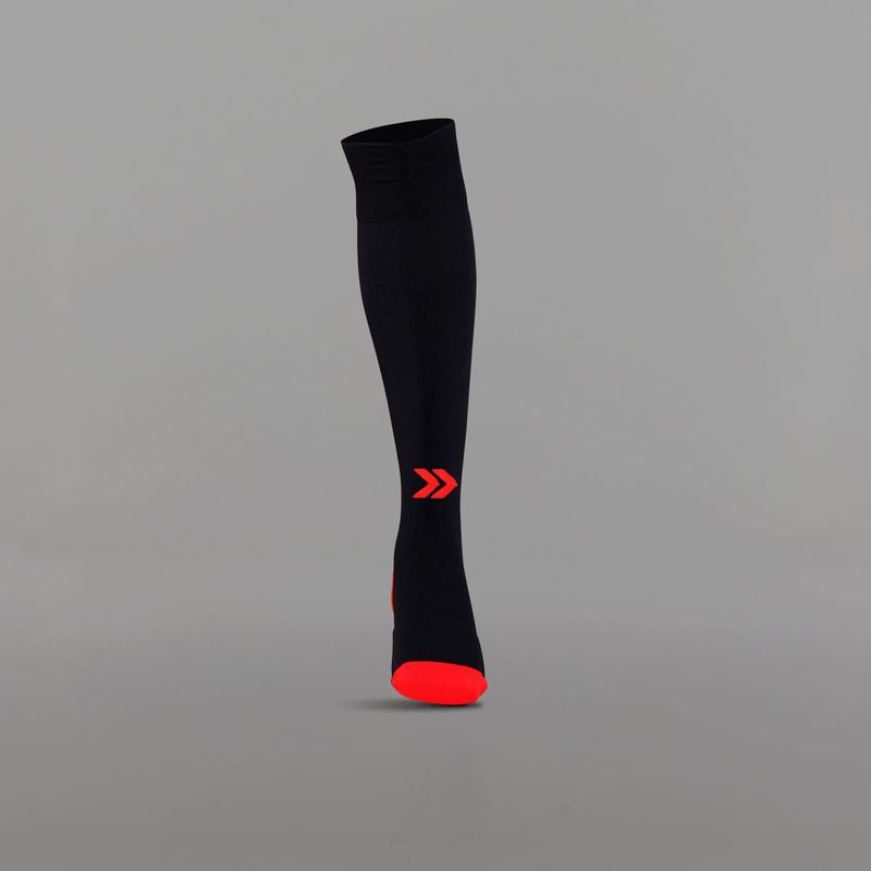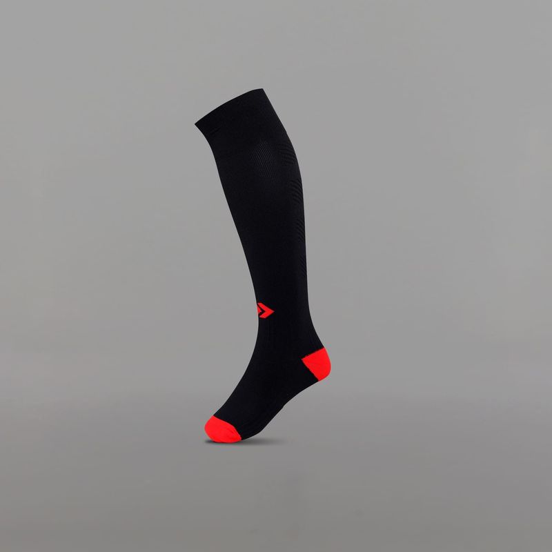 • Posee caña extra larga, talón y puntera reforzados, costura de puntera plana, pié acolchado con media toalla, compresión en tobillo y arco de pié, zonas de ventilación, puño doble y logo tejido.